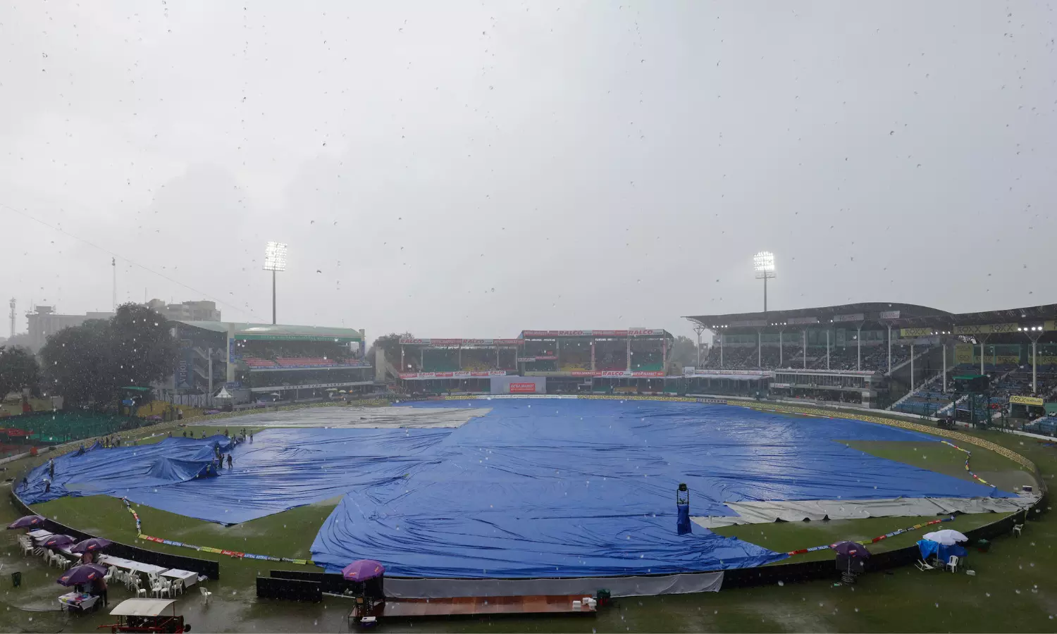लगातार बारिश के कारण कानपुर में पहले दिन का खेल रद्द कर दिया गया है", BCCI की ओर से X अपडेट दिया है गया कि बारिश के चलते आज केवल 35 ओवर का खेल संभव हो पाया।