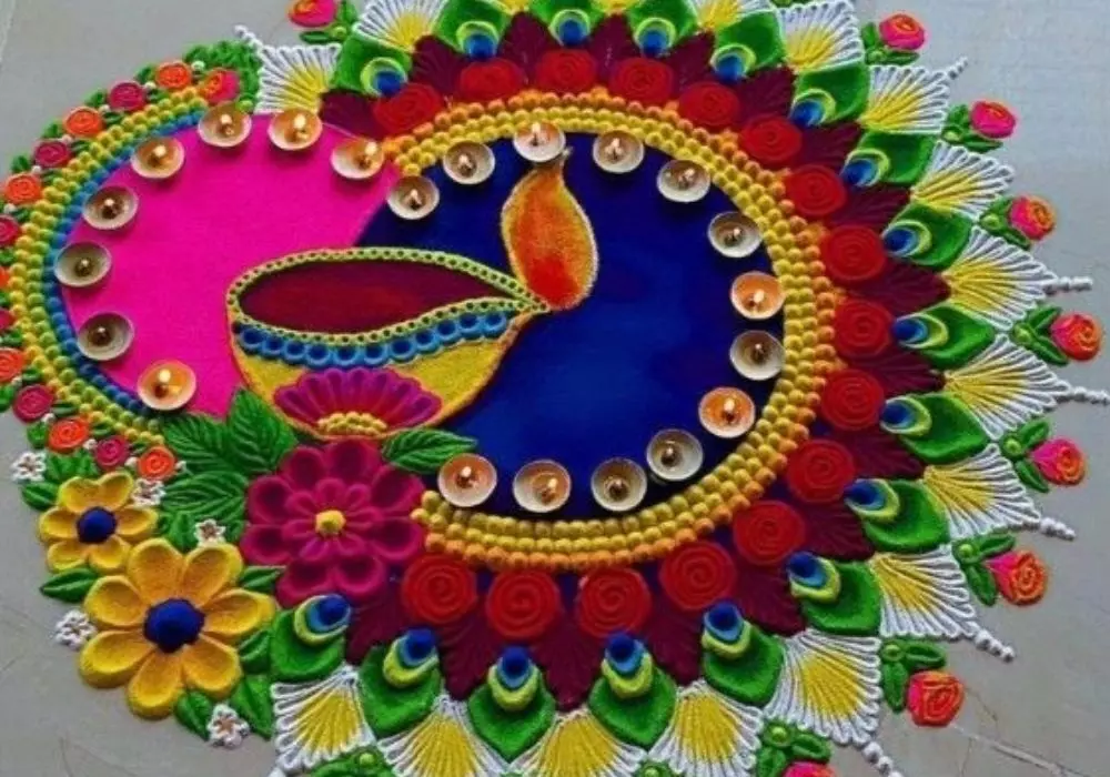 Diwali Rangoli Design:हिंदू धर्म में कई व्रत और त्योहारों का महत्व होता है इसमें सबसे बड़ा त्योहार यानि दिवाली आने वाला है। दिवाली के दिन घरों में माता लक्ष्मी और श्रीगणेश जी की पूजा की जाती है। साथ ही इस त्योहार के मौके पर घर और आंगन को दीयों और रंगोली से सजाया जाता है। रंगोली भारतीय संस्कृति का भी एक महत्वपूर्ण हिस्सा है जिसे मनाने की पीछे परंपरा आती है।
