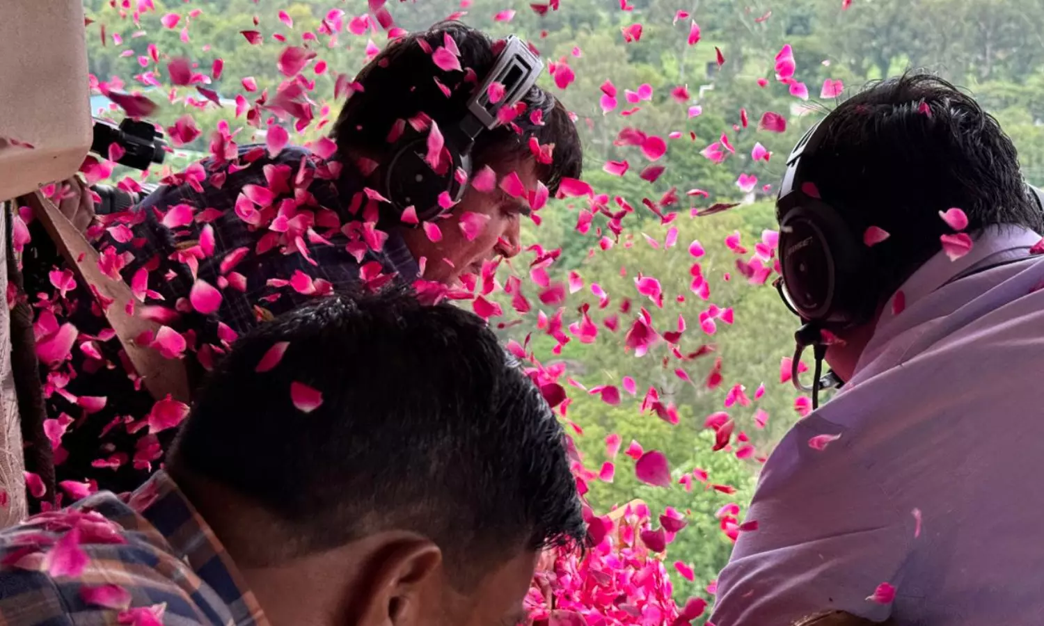 पुष्प वर्षा के साथ किया गया हवाई सर्वे :
