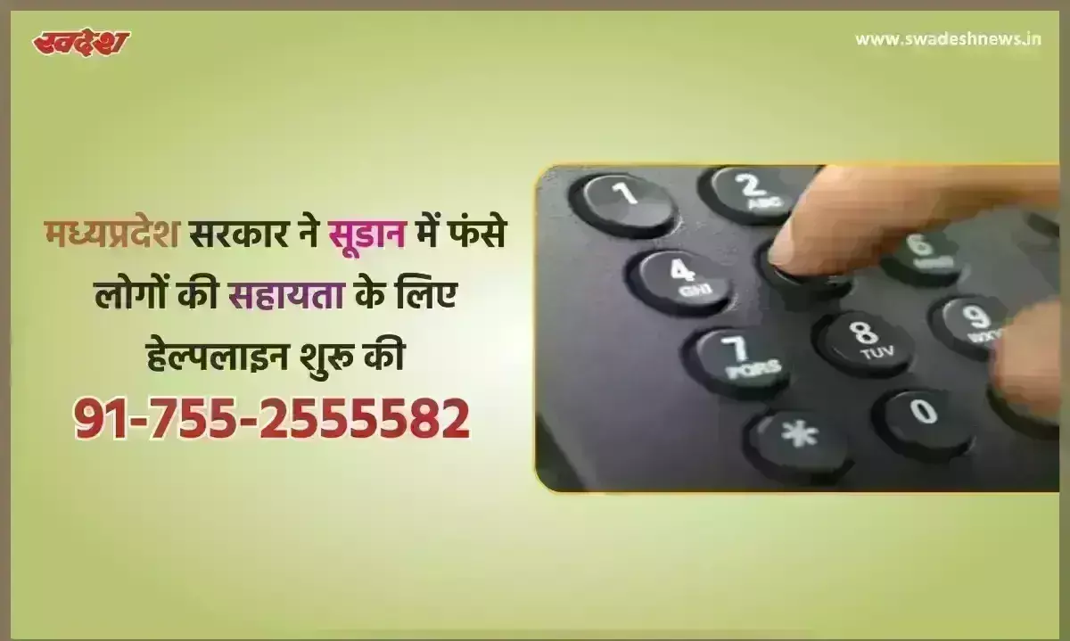 |सूडान में फंसे मध्यप्रदेश या अन्य राज्यों में वापस आने के इच्छुक लोग हेल्पलाइन "91-755-2555582" से संपर्क कर सकते हैं