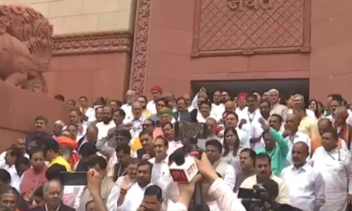 NDA सांसदों ने संसद परिसर में आपातकाल के खिलाफ किया प्रदर्शन