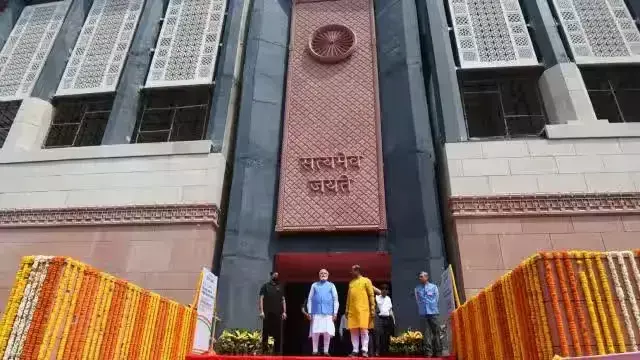 बता दें कि त्रिकोणीय आकर के इस नए संसद भवन का निर्मांण कार्य 2021 को शुरू हुआ था। 64 हजार 500 वर्ग मीटर में बने इस चार मंजिला भवन में तीन दरवाजे है। जिन्हें ज्ञान द्वार, शक्ति द्वार और कर्म द्वार नाम दिया गया है। इन द्वारों से सांसदों, वीआईपी और आगंतुकों को अलग-अलग प्रवेश मिलेगा। नया भवन पुराने संसद भवन से 17,000 वर्ग मीटर बड़ा है।ये भवन पूरी तरह से भूकंपरोधी है। नई संसद भवन में संविधान हॉल बनाया गया है। जो इस नए भवन का आकर्षण का केंद्र है। इस हॉल में भारत के संविधान की मूल प्रति रखी गई है। जिसमें एक पुस्तकालय, कई समिति कक्ष और भोजन कक्ष है। नए संसद भवन में महात्मा गांधी, जवाहरलाल नेहरू, सुभाष चंद्र बोस और देश के अन्य प्रधानमंत्रियों की तस्वीरें लगाई जाएंगी।