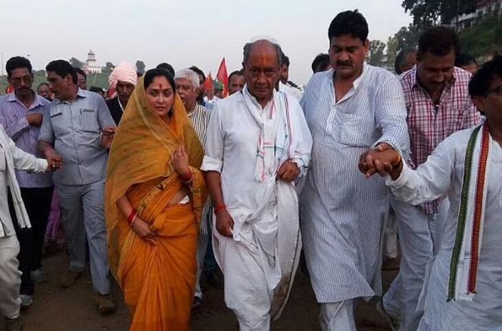 इसी कड़ी में अगला नाम आता है कांग्रेस नेता और मप्र के पूर्व सीएम दिग्विजय सिंह का। उन्होंने वर्ष 2017 में नर्मदा यात्रा की थी। 6 माह चली इस यात्रा में उन्होंने प्रदेश की 110 विधानसभा सीटों का दौरा किया और जनता से उनकी समस्याएं भी सुनीं। जिसका फायदा 2018 के आम चुनाव में कांग्रेस को मिला। कांग्रेस को इस चुनाव में 114 सीटों पर जीत मिली थी। स्पष्ट बहुमत से दूर रहने के कारण कांग्रेस ने बसपा और सपा से गठबंधन कर सरकार बनाई थी।हालांकि बाद में पार्टी में फूट और विधायकों के दलबदल के बाद कांग्रेस सत्ता से बाहर हो गई।