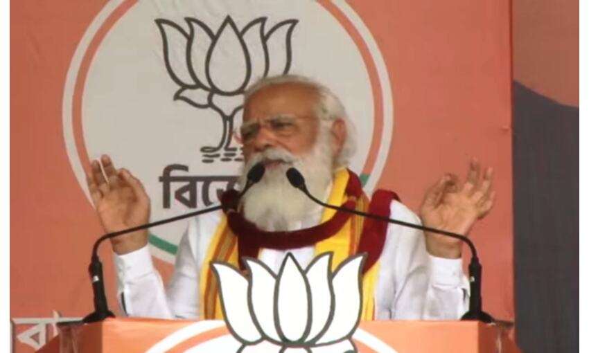मोदी ने कहा कि ममता बनर्जी चुनाव आयोग को गालियां देती रहती हैं लेकिन अगर जो बात आप कह रहे हैं, अगर हम बोले होते कि सारे हिंदू एक हो जाएं, भाजपा को वोट दें तो दीदी हमें यह चुनाव आयोग ने नोटिस भेज दिया होता। आप का बयान इस बात का संकेत है कि आप चुनाव हार रही हैं। प्रधानमंत्री ने कहा कि वाममोर्चा के शासन को उखाड़ने में ईवीएम में आपकी मदद की और उसी ईवीएम को आप गाली देती हैं। उन्होंने कहा कि ममता बनर्जी बंगाल के लोगों को बदनाम कर रही हैं। बंगाल की जनता को कमल निशान वाला बटन दबाकर ममता को सजा देगी। पीएम ने कहा कि दीदी को तिलक लगाने वालों से दिक्कत है, भगवा धारण करने वालों से दिक्कत है, यह दिखाता है कि दीदी की जमीन खिसक चुकी है।