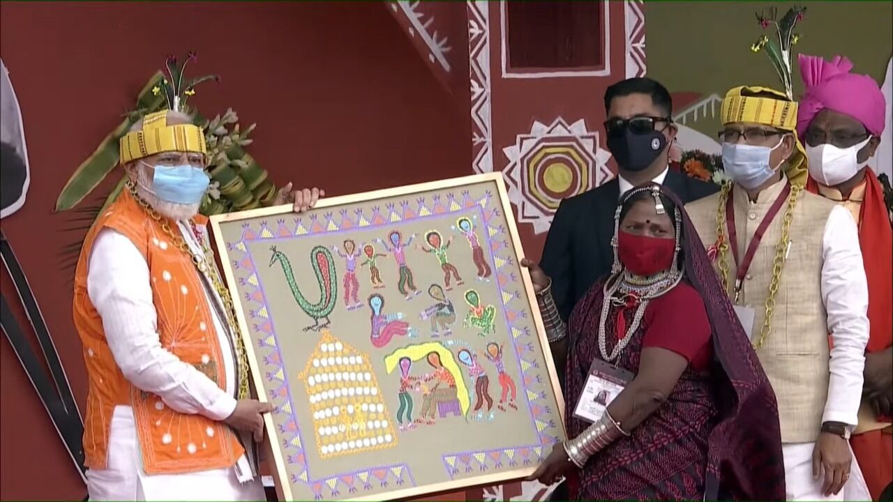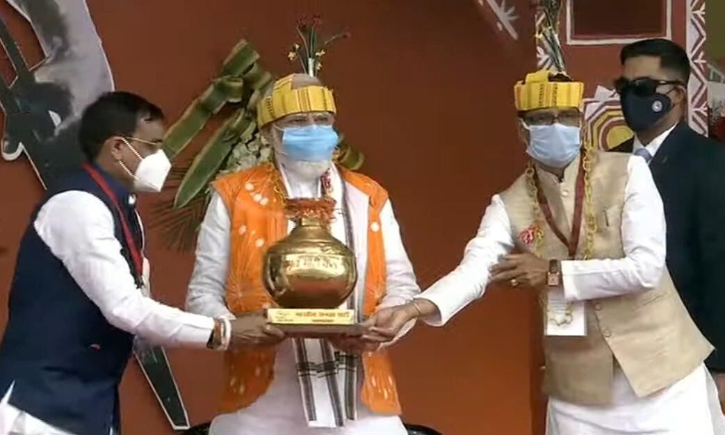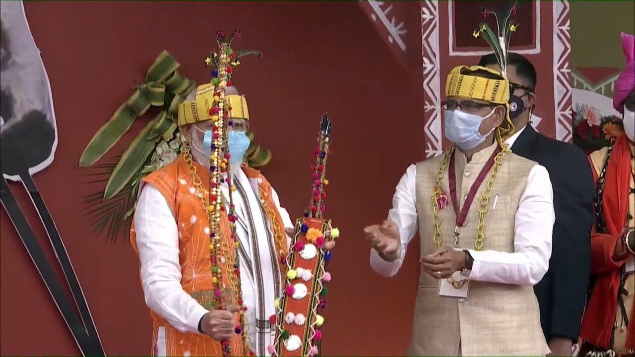 प्रधानमंत्री मोदी के स्वागत में जनजातीय कलाकार पारम्परिक वेशभूषा में लगातार नृत्य की प्रस्तुतियां दे रहे हैं। जम्बूरी मैदान में करीब ढाई लाख से अधिक जनजातीय बंधु मौजूद हैं, जिन्हें प्रधानमंत्री मोदी संबोधित करेंगे। कुछ ही देर में प्रधानमंत्री जनजातीय बंधुओं के लिए विभिन्न जनकल्याणकारी योजनाओं की शुरुआत करेंगे।