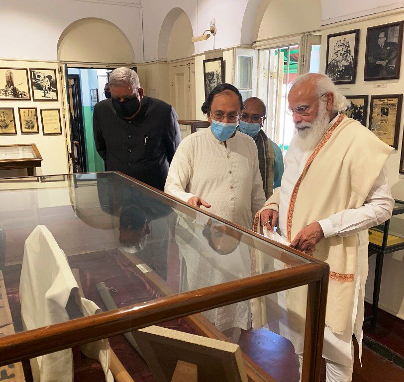 इससे पहले प्रधानमंत्री ने नेताजी भवन का दौरा किया। यहां पहुंच नेताजी को श्रद्धांजलि अर्पित की एवं उनके परिजनों से मुलाकात की। उन्होंने विक्टोरिया मेमोरियल में नेताजी से जुड़ी दो नई गैलरियों का उद्घाटन किया। जिसमें से एक गैलरी सुभाष चंद्र बोस को समर्पित है एवं दूसरी देश के अन्य स्वतंत्रता सेनानियों को समर्पित है।इ