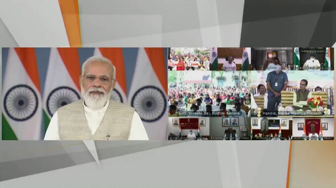|नई दिल्ली। प्रधानमंत्री नरेंद्र मोदी ने आज मध्यप्रदेश में स्वामित्व योजना के 19 जिलों के 3000 ग्रामों में एक लाख 71 हजार हितग्राहियों को अधिकार अभिलेख का वितरण किया। उन्होंने कहा की हम टीवी पर देखते हैं कि एमपी है, तो गजब है। एमपी गजब तो है ही। एमपी देश का गौरव भी है। एमपी में गति भी है और एमपी में विकास की ललक भी है। लोगों के हित में कोई योजना बनती है, मध्य प्रदेश में उस योजना को जमीन पर उतारने के लिए दिन-रात एक कर दिया जाता है।
