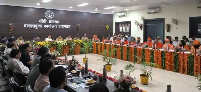 प्रयागराज। महाकुम्भ 2025 को दिव्य एवं भव्य बनाने के लिए सभी अखाड़ों के सन्तों से समन्वय स्थापित करते हुए मण्डलायुक्त विजय विश्वास पंत एवं अपर पुलिस महानिदेशक भानु भास्कर की अध्यक्षता तथा मेलाधिकारी, कुम्भ मेला विजय किरन आनंद की उपस्थिति में अखिल भारतीय अखाड़ा परिषद की प्रथम बैठक शनिवार को हुई। इस दौरान महाकुम्भ के मुख्य स्नान पर्वों की तिथियों का निर्धारण सर्वसम्मति से हुआ। इसके साथ ही क्रियान्वित की जा रही विभिन्न परियोजनाओं के बारे में बताया गया।