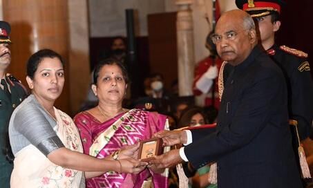 नईदिल्ली। राष्ट्रपति राम नाथ कोविन्द ने लद्दाख की गलवान घाटी में ऑपरेशन 'स्नो लेपर्ड' के दौरान चीनी सैनिकों के साथ लोहा लेते हुए शहीद बिहार रेजीमेंट की 16वीं बटालियन के कर्नल संतोष बाबू को मरणोपरांत महावीर चक्र से सम्मानित किया। समारोह में कर्नल संतोष बाबू की मां और पत्नी ने राष्ट्रपति से पुरस्कार प्राप्त किया।