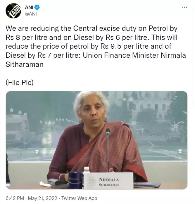 बता दें की इससे पहले केंद्र सरकार ने बीते वर्ष 3 नवंबर 2021 को पेट्रोल पर 10 रुपए प्रति लीटर और डीजल पर 5 रुपए प्रति लीटर एक्साइज ड्यूटी घटाई थी।उस समय विपक्षी दल शासित राज्यों ने वैट ड्यूटी कम नहीं की थी। जिसके कारण महाराष्ट्र, प बंगाल, तमिलनाडु, तेलंगाना, आंध्र प्रदेश, केरल और झारखंड के कम लोगों को लाभ नहीं मिला था।