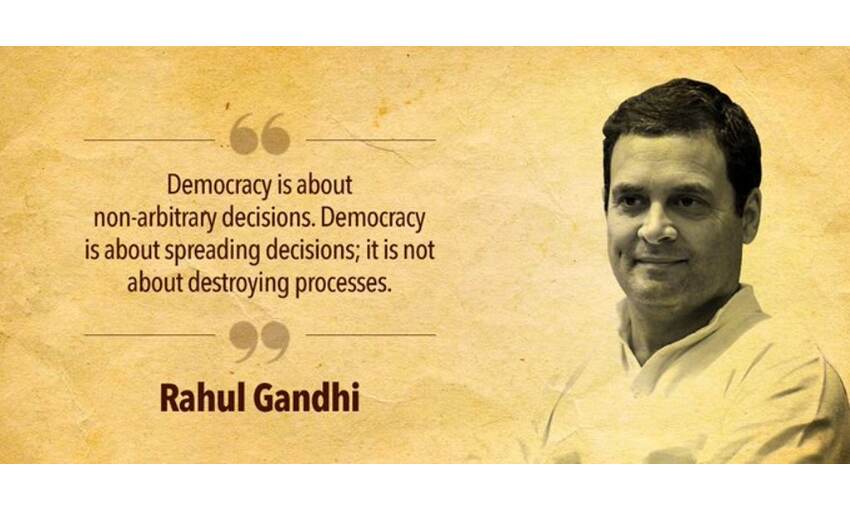 कांग्रेस पार्टी के आधिकारिक ट्विटर हैंडल से राहुल गांधी की फोटो के साथ लोकतंत्र की मजबूती को लेकर पोस्ट किया गया है। ट्वीट में लिखा है कि "लोकतंत्र का मतलब विकेंद्रीकृत शक्ति और बहस है। यह संस्थाएं हैं जो सरकार को जवाबदेह रखती हैं। यह लोगों के कल्याण के प्रति सरकार का कर्तव्य है, न कि इसके विपरीत।" इस ट्वीट में पार्टी ने हैशटैग के साथ 'कांग्रेस के विचार' को भी जोड़ा है।