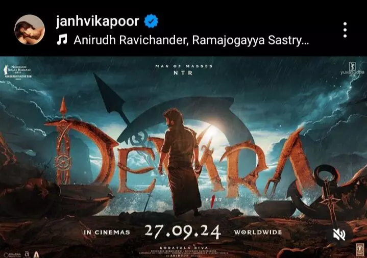 बॉलीवुड एक्ट्रेस जान्हवी कपूर , साउथ इंडस्ट्री के एक्टर जूनियर एनटीआर के साथ अपकमिंग फिल्म देवरा में नजर आने वाली है। इस फिल्म की रिलीज डेट भी आज सामने आई है। यह फिल्म 27 सितंबर 2024 को रिलीज होगी। बताया जा रहा है कि या फिर धमाकेदार साबित होगी।