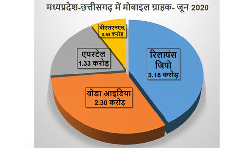 जून 2020 में जियो के ग्राहकों की संख्या 6.66 लाख बढ़कर 3.18 करोड़ हो गई। जून 2020 में वोडाफोन आइडिया ने 3.93 लाख ग्राहक खोए हैं। वोडाफोन आइडिया के मध्यप्रदेश-छत्तीसगढ़ में 2.30 करोड़ ग्राहक हैं। वहीं इस दौरान एयरटेल के ग्राहकों की संख्या 2.72 लाख घटकर 1.33 करोड़ तक पहुंच गई। सरकारी कंपनी बीएसएनएल के मप्र-छग में 19867 ग्राहक घटकर 63.7 लाख ग्राहक हो गए।