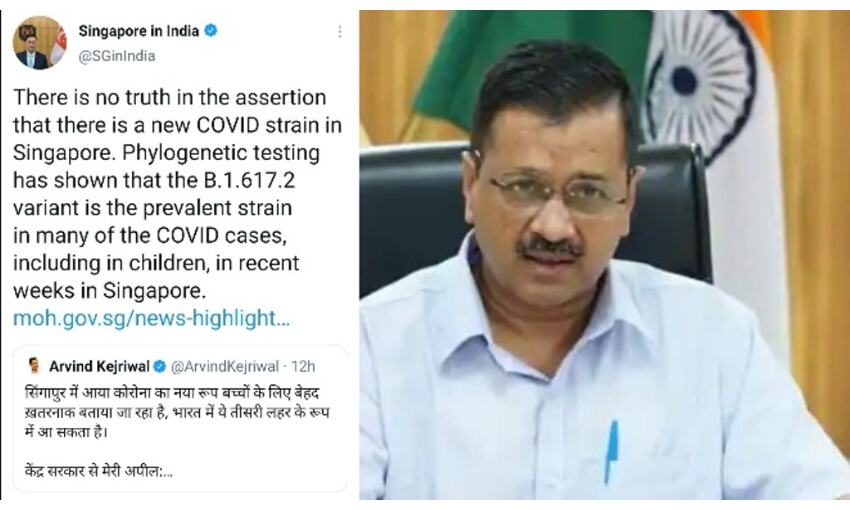 नईदिल्ली। दिल्ली के मुख्यमंत्री अरविंद केजरीवाल द्वारा सिंगापूर में फैले कोरोना संक्रमण के नए वेरिएंट को लेकर दिए बयान की सिंगापुर ने पोल खोल दी है। उन्होने कल मंगलवार को सिंगापुर में फैले संक्रमण को नया वेरिएंट बताते हुए वहां से भारत आने वाली फ्लाइट पर रोक लगाने की मांग की थी। केजरीवाल के इस बयान पर सिंगापुर ने कड़ी आपत्ति जताते हुए भारतीय उच्चायुक्त को तलब कर अपनी नाराजगी व्यक्त की है।