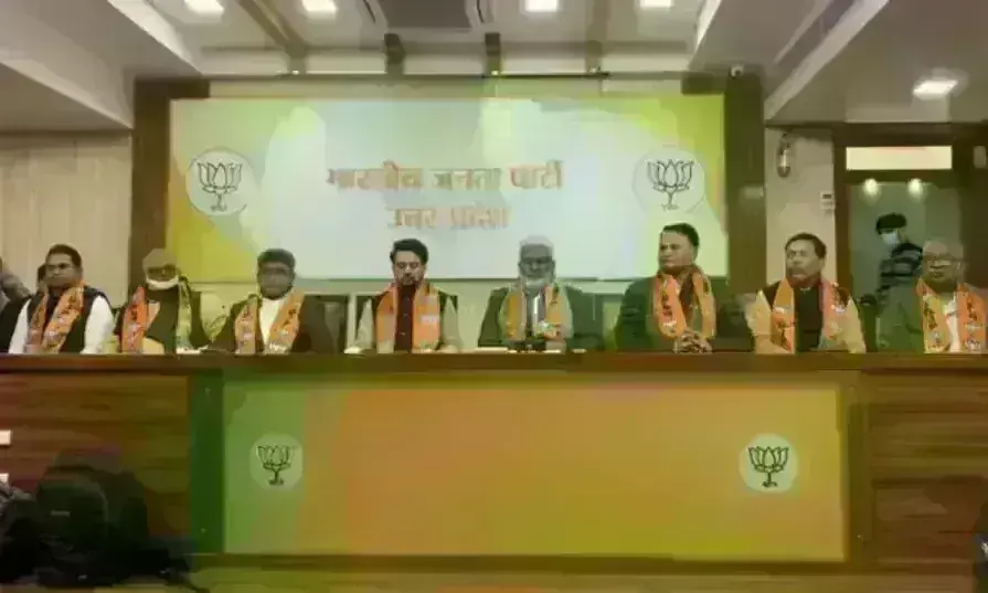 |लखनऊ। समाजवादी पार्टी (सपा) के एमएलसी घनश्याम लोधी और शैलेंद्र सिंह रविवार को भारतीय जनता पार्टी में शामिल हो गए। भारतीय जनता पार्टी के प्रदेश अध्यक्ष स्वतंत्रदेव सिंह और केंद्रीय मंत्री एवं प्रदेश के सह चुनाव प्रभारी अनुराग ठाकुर ने उनको पार्टी की सदस्यता दिलाई। इसके अलावा, पूर्व विधायक समेत कई अन्य नेताओं और पूर्व आईएएस रामबहादुर को पार्टी की सदस्यता दिलाई गई। इससे पहले, वीआरएस लेने वाले कानपुर के पहले पुलिस आयुक्त असीम अरुण ने भी भारतीय जनता पार्टी की सदस्यता ग्रहण की।