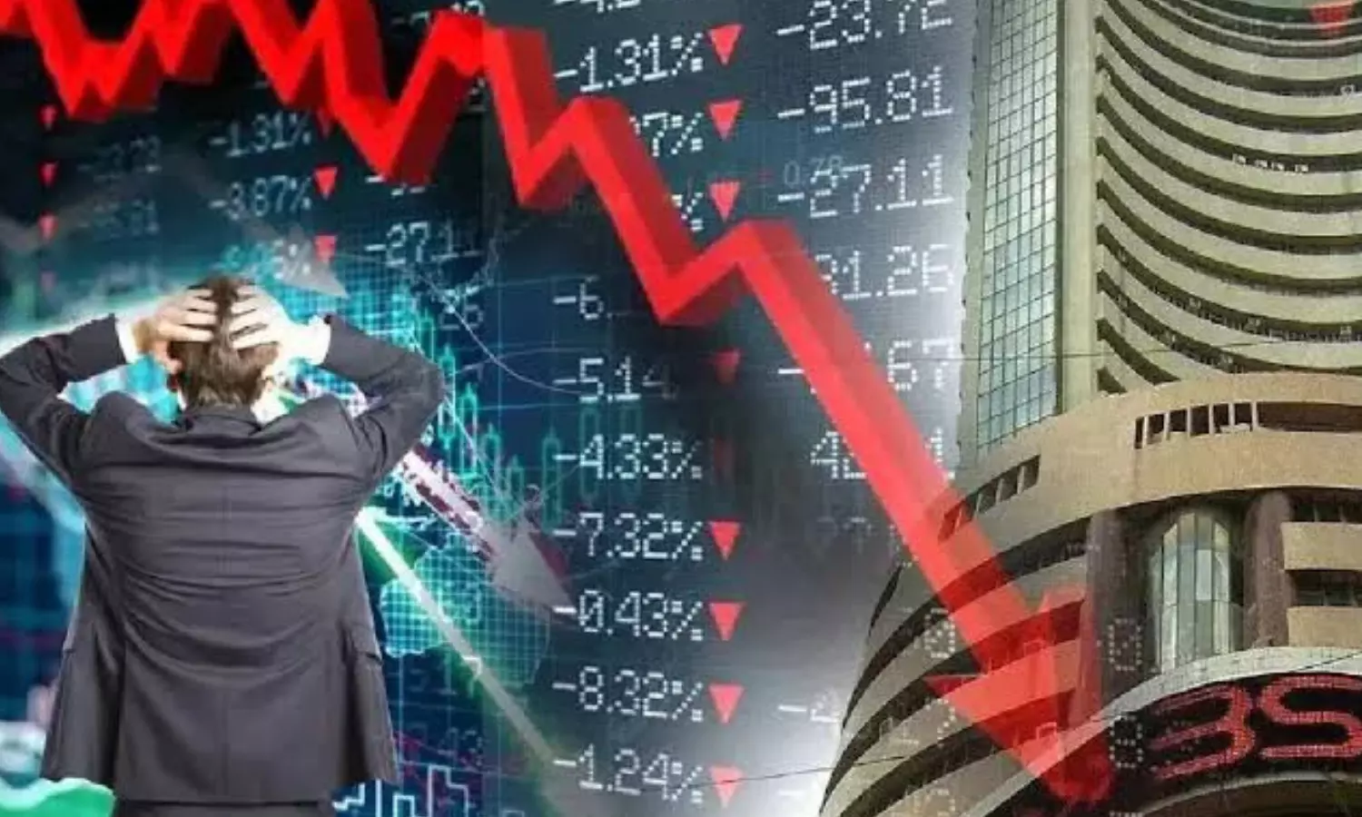 खबर लिखने के समय तक भी शेयर बाजार में हरा रंग नहीं दिखा। यहां गिरावट ही दिख रही है। सेंसेक्स(BSE Sensex) जहां 503.32 अंक यानी 0.64 फीसदी गिरकर करीब 78,171.86 अंक पर कारोबार कर रहा तो वहीं, निफ्टी (NSE Nifty) 192.40 अंक यानी 0.81 फीसदी की गिरावट के साथ करीब 23,691.05 अंक के आसपास कारोबार कर रहा है।