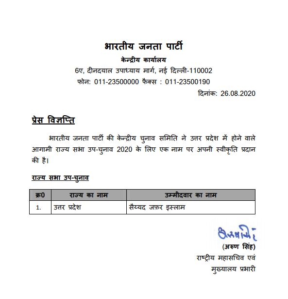 कॉरपोरेट जॉब छोड़ भाजपा से जुड़े सैयद जफर इस्लाम को मिला राज्यसभा का टिकट