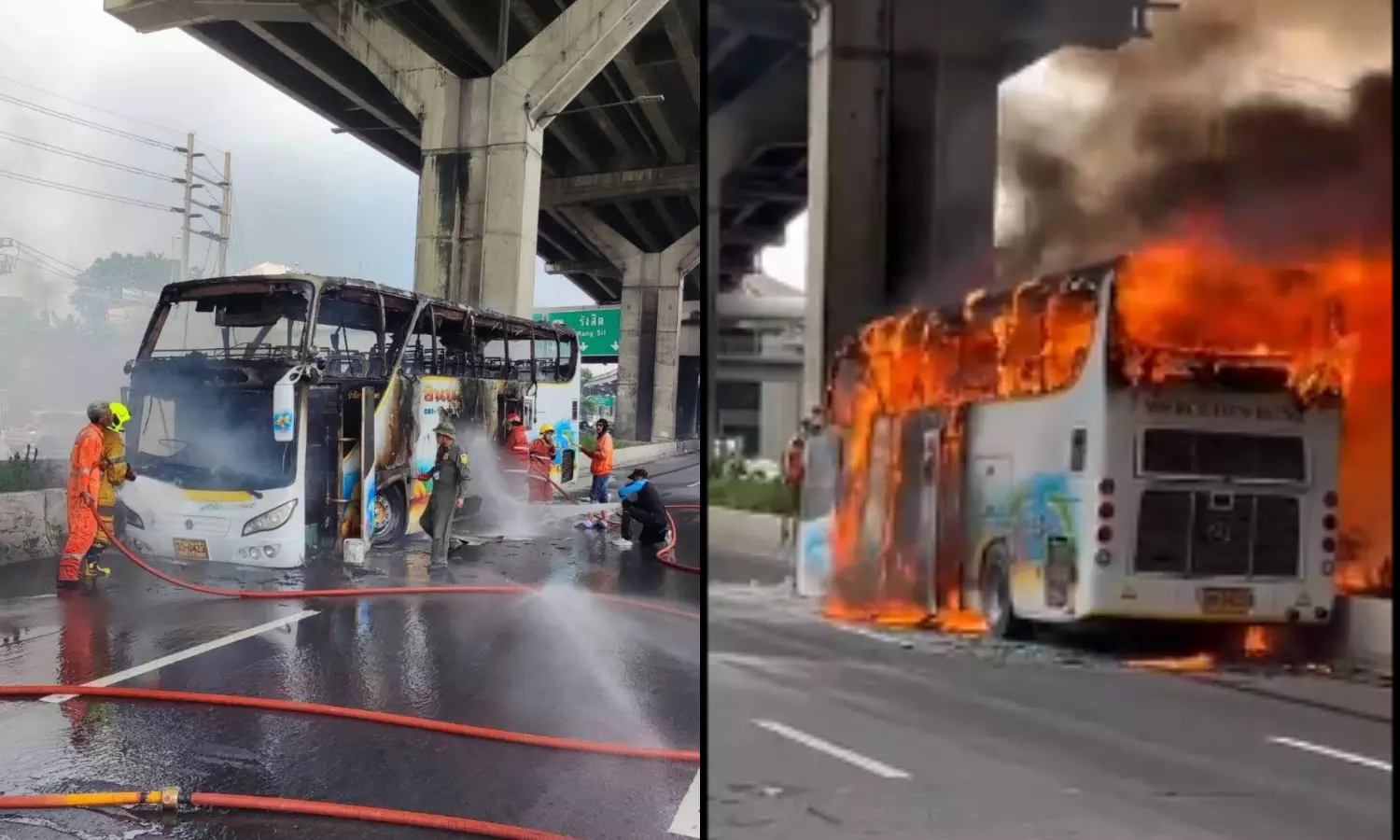 |थाईलैंड में 44 बच्चों को ले जा रही एक स्कूल बस में आग लगने से 25 बच्चों की मौत की खबर सामने आयी है। बताया जा रहा है कि यह आग बस का टायर फटने से लगी है।