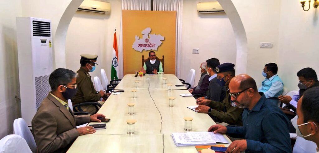 |भोपाल। प्रदेश में कोरोना संक्रमण की बढ़ते कहर और एंटी माफिया को देखते हुए मुख्यमंत्री शिवराज सिंह चौहान ने आज रविवार को अपने निवास पर आपात बैठक बुलाई है। जिसमें भोपाल कमिश्नर, आईजी, कलेक्टर, एसपी, नगर निगम कमिश्नर सहित अन्य वरिष्ठ अधिकारी शामिल हुए। मुख्यमंत्री ने इस बैठक में कानून व्यवस्था एवं अन्य विषयों पर सख्त कार्रवाई करने के निर्देश दिए।