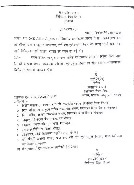 सरकार ने डॉ अरुणा कुमार को 24 घंटे में GMC से हटाया, जूनियर डॉक्टर के विरोध के बाद त्वरित कार्रवाई