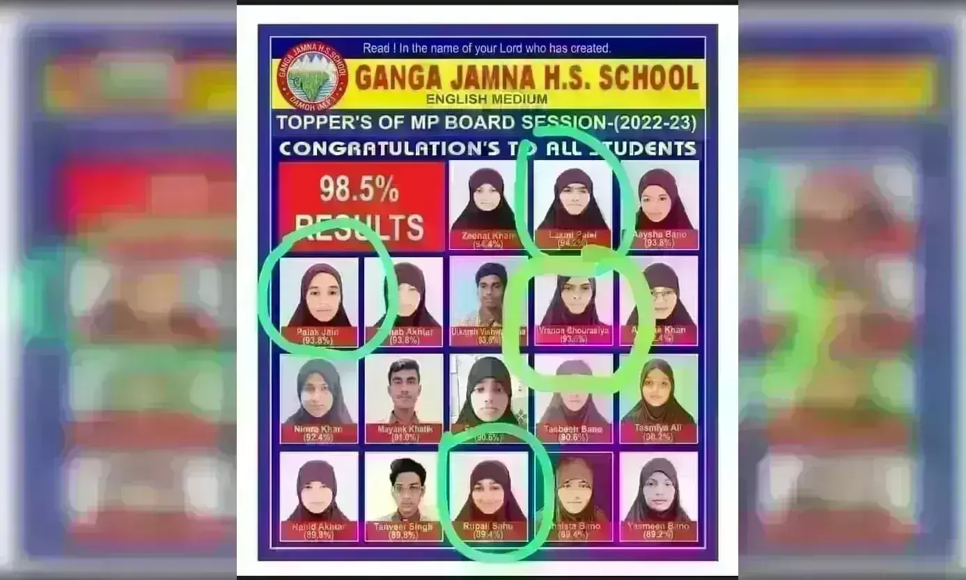 दमोह के एक स्कूल के पोस्टर में हिंदू लड़कियों को पहनाया गया मुस्लिम हिजाब