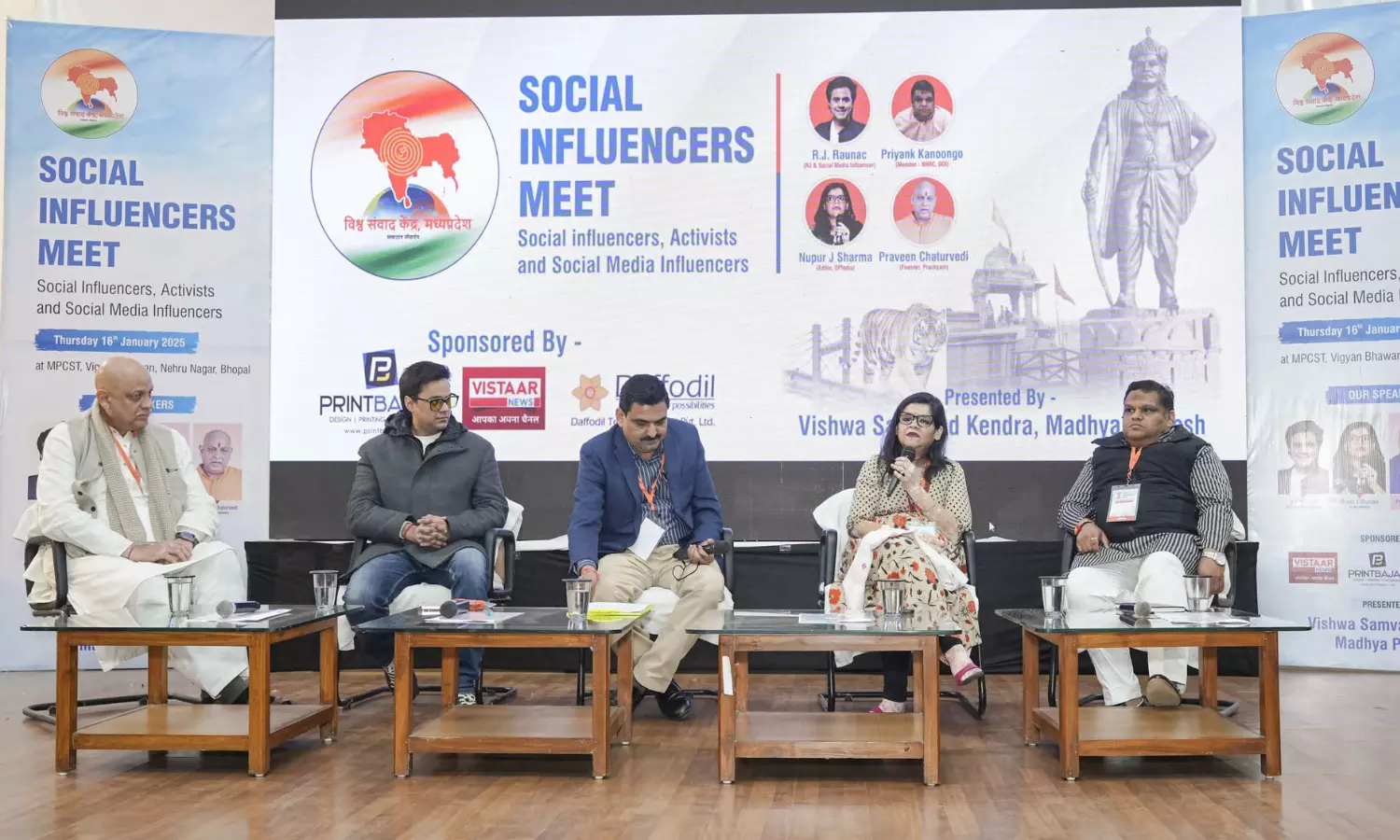 कार्यक्रम में रेडियो आरजे रौनक, प्रियंक कानूनगो, प्रवीण चतुर्वेदी और नुपूर जे शर्मा ने सोशल मीडिया के बदलते परिवेश और बदलती भूमिका पर चर्चा करते हुए अपने अनुभव साझा किए। इस पैनल ने कंटेट क्रिएटर्स काे बताया कि यदि हम किसी कंटेट का क्रिएशन करते हैं और उस पर रीच न आए तो हताश और निराश न हों, बल्कि तथ्यात्मक कंटेट का निर्माण करते रहें।