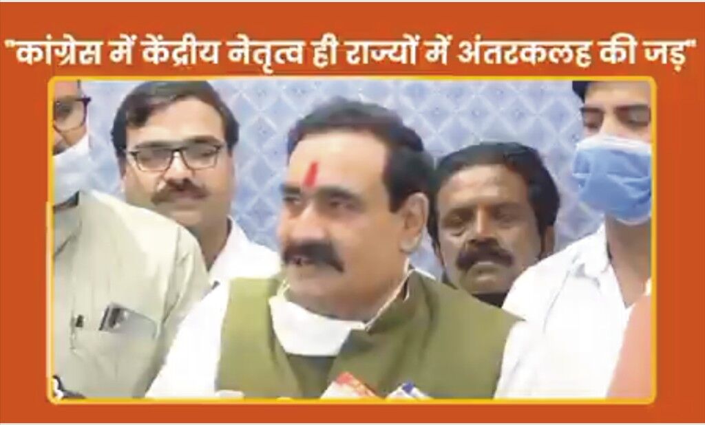 मीडिया से बातचीत करते हुए गृहमंत्री नरोत्तम मिश्रा ने कांग्रेस पर जमकर निशाना साधा। उन्होंने कहा कि कांग्रेस का इतिहास उठाकर देख लीजिए , जुमलों की कतार मिलेगी। कांग्रेस ने 'इंदिरा लाओ गरीबी हटाओ' का नारा खूब लगाया। लेकिन देश से कांग्रेस के राज्य में एक बार भी गरीबी नहीं हटी, गरीब जरूर हटा दिए। कांग्रेस की इसी तरह आज भी जुमलेबाजी जारी है। उन्होंने कहा कि कांग्रेस झूठ पर आधारित पार्टी है। यही वजह है कि पंजाब,राजस्थान व छत्तीसगढ़ में उसकी सरकारों में अंतर्कलह मची है। दरअसल कांग्रेस हाईकमान अपना दखल बनाए रखने के लिए हर राज्य में पेंच फंसा देता है। उसे राजस्थान में सचिन पायलट और छत्तीसगढ़ में टीएस सिंहदेव से किया वादा निभाना चाहिए।