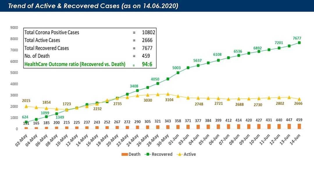 भोपाल। कोरोना केसों के मामले में भारत दुनिया में चौथा सबसे अधिक प्रभावित देश है। हालांकि, मौतों के मामले में भारत अभी नौवें स्थान पर है। लेकिन प्रदेश की स्थिति में काफी सुधार दिख रहा है। क्योंकि प्रदेश अब पूरे भारत में आठवें स्थान पर आ गया है। अगर प्रदेश के एक्टिव केस देखे तब एक दिन में 151 की कमी आई है तथा 300 मरीज स्वस्थ होकर घर पहुंच रहे हैं। अब हमारे एक्टिव प्रकरणों की संख्या 2666 है। हमारी डबलिंग रेट बढ़कर 34.1 दिन तथा रिकवरी रेट 71.1 प्रतिशत हो गई है। यह प्रदेश के लिए बहुत अच्छे संकेत हैं।