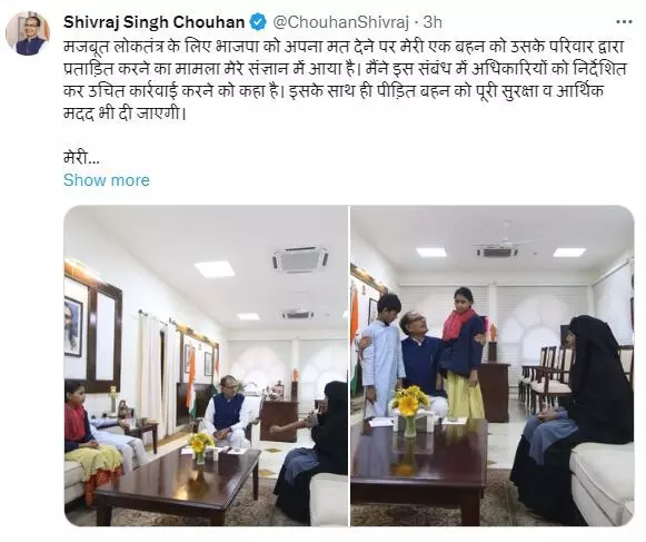 भाजपा को वोट देने पर मुस्लिम महिला की देवर ने की पिटाई, शिवराज सिंह बोले - चिंता मत करो बहना, मैं तुम्हारे साथ