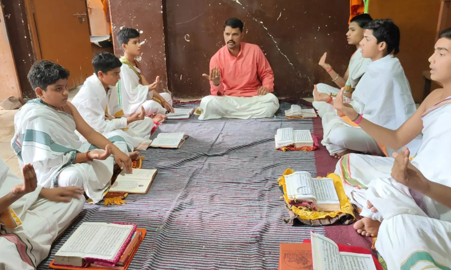 |आचार्य पाणिग्राही संस्कृत वेद पाठशाला में सामवेद और यजुर्वेद का अध्ययन कर रहे हैं बच्चे