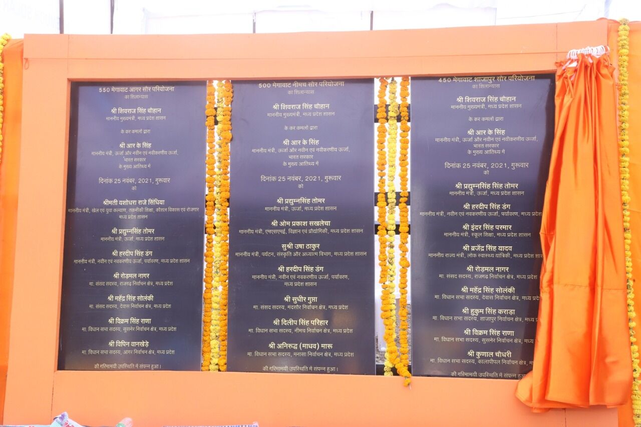 मुख्यमंत्री चौहान और केन्द्रीय ऊर्जा और नवीन एवं नवकरणीय ऊर्जा मंत्री आर.के. सिंह ने गुरुवार को शाजापुर में 5250 करोड़ रुपये की लागत के 1500 मेगा वॉट क्षमता वाले आगर, शाजापुर और नीमच के सौर ऊर्जा पार्क के क्रय अनुबंध पर हस्ताक्षर कर भूमि-पूजन किया।