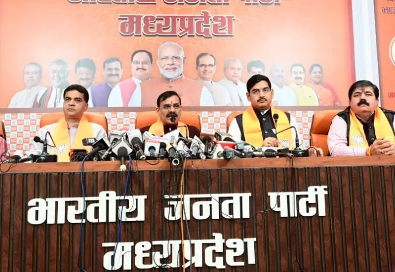 भाजपा प्रदेश अध्यक्ष वीडी शर्मा की प्रदेश मीडिया सेंटर, भोपाल से पत्रकार वार्ता