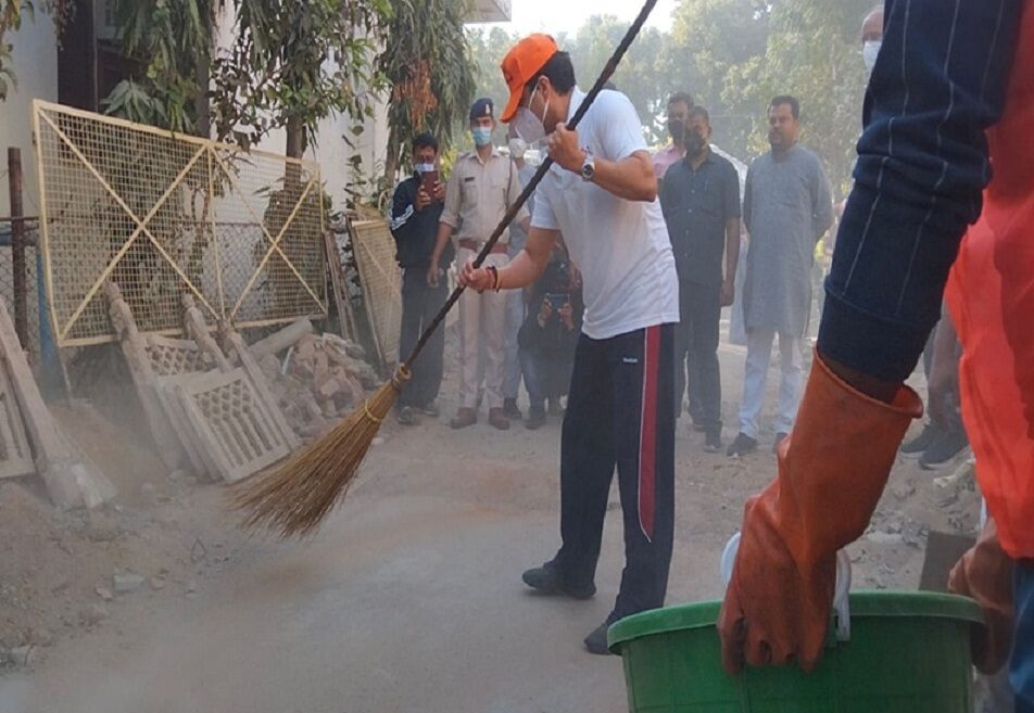 केंद्रीय मंत्री ज्योतिरादित्य सिंधिया ने लगाई झाड़ू, स्वच्छता का दिया संदेश