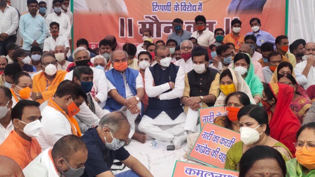ग्वालियर में कमलनाथ के विरोध में भाजपा का मौन व्रत,सोनिया, प्रियंका माफी मांगे