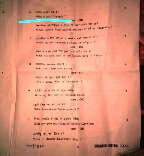 बोर्ड परीक्षाओं में एक बार फिर पूछा 'आजाद कश्मीर को लेकर आपत्तिजनक प्रश्न