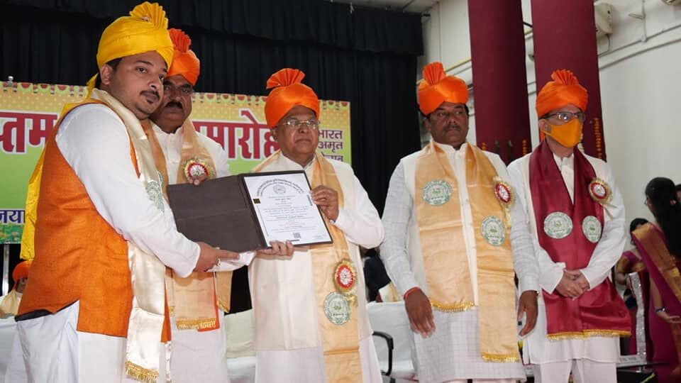 यहां कृषि महाविद्यालय के सभागार में राज्यपाल एवं कुलाधिपति श्री मंगुभाई पटेल की अध्यक्षता में आयोजित हुए भव्य दीक्षांत समारोह में प्रदेश के किसान कल्याण एवं कृषि विकास मंत्री श्री कमल पटेल और उद्यानिकी व खाद्य प्रसंस्करण राज्य मंत्री (स्वतंत्र प्रभार) श्री भारत सिंह कुशवाह बतौर विशिष्ट अतिथि मौजूद थे। एक मई 2019 से 30 अप्रैल 2021 के बीच पढ़ाई पूरी करने वाले विद्यार्थियों को दीक्षांत समारोह में उपाधियां प्रदान की गईं। कृषि संकाय के 8 विद्यार्थियों को स्वर्ण पदक प्रदान किए गए। साथ ही स्नातक के 600, स्नातकोत्तर के 374 एवं पीएचडी के 33 विद्यार्थियों सहित कुल 1007 विद्यार्थियों को उपाधियां प्रदान की गईं। इसके अलाव आधा दर्जन विद्यार्थियों को सिरताज बहादुर सिन्हा स्मृति नगद पुरस्कार भी दिए गए। अतिथियों ने कृषि विश्वविद्यालय की स्मारिका का भी विमोचन किया।