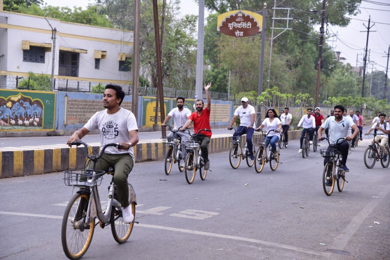साइकिल रैली को नगर निगम आयुक्त किशोर कन्याल व स्मार्ट सिटी सीईओ नीतू माथुर नें हरी झण्डी दिखाकर रवाना किया। यह साइकिल रैली बीएसएनएल साईकल डॉक स्टेशन सिटी सेंटर से शुरू होकर कुलपति बंगला, गांधी रोड, होटल तानसेन होते हुए वापस बीएसएनएल साइकिल डॉक स्टेशन पर पहुंचकर संपन्न हुई।