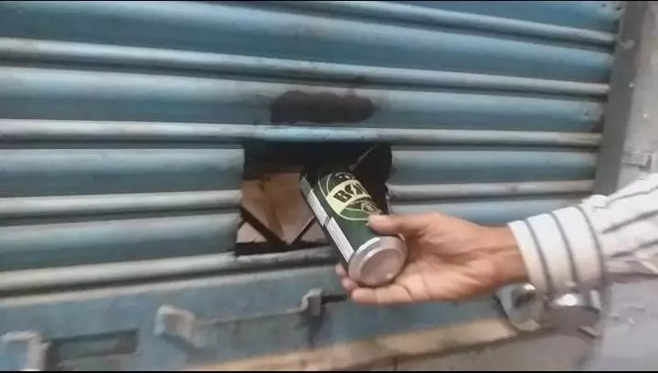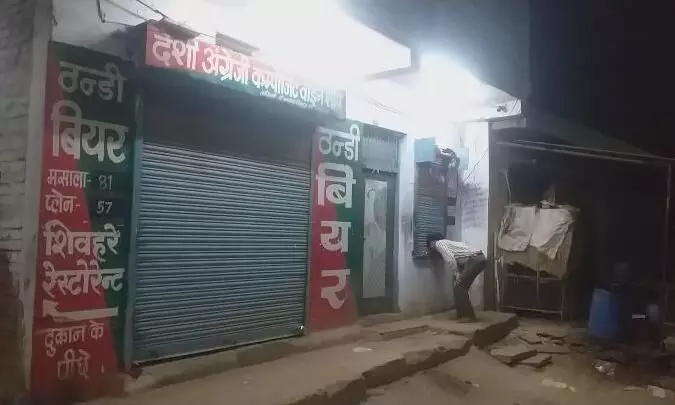 लधेड़ी स्थित दुकान की खिड़की से रात के 2 बजे शराब लेता युवक