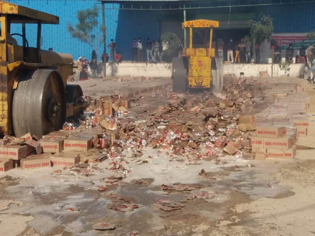 आबकारी विभाग ने 10 करोड़ कीमत की बियर की 27 हजार बोतलों पर चलाया बुलडोजर