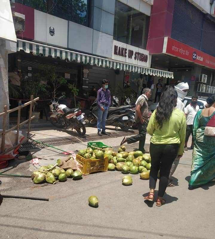 नगर निगम की ज्यादती, नारियल पानी वाले का ठेला पलटा