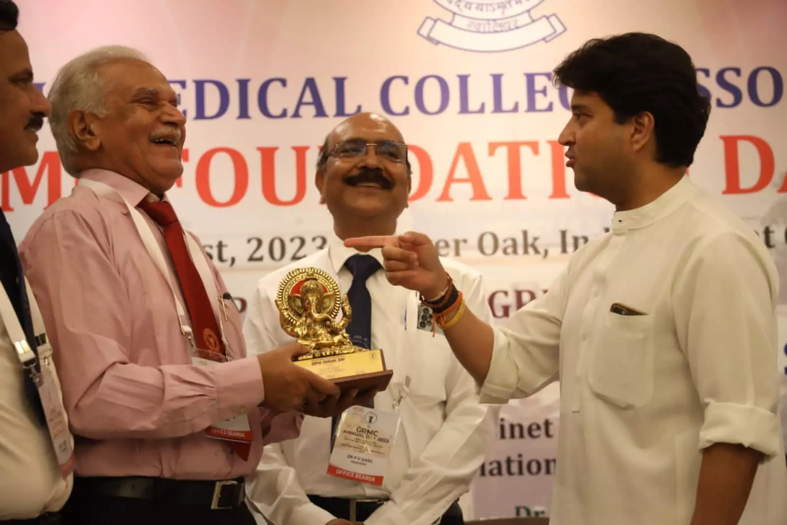 इसके साथ ही डॉक्टरों से मुलाकात पर कहा कि प्रथम बैच के डॉक्टरों से मिलकर एक सुखद अनुभूति हुई। आज मैं उस डॉक्टर समुदाय से मिल सका जो भगवान का मानवीय रूप होते हैं और सेवा भाव से परिपूर्ण होते हैं।उन्होंने कहा कि इस कॉलेज की स्थापना 1946 में मेरे दादा महाराज जीवाजी राव सिंधिया जी द्वारा अपनी माता मातोश्री महारानी गजरा राजे जी की स्मृति में की गई थी। इसे लौहपुरुष श्रद्धेय सरदार वल्लभ भाई पटेल जी का भी आशीर्वाद प्राप्त था। इस कॉलेज ने क्षेत्र में न केवल डॉक्टरों की कमी को पूरा किया बल्कि क्षेत्र में स्वास्थ्य सेवा सुनिश्चित करने में अहम भूमिका भी निभाई।