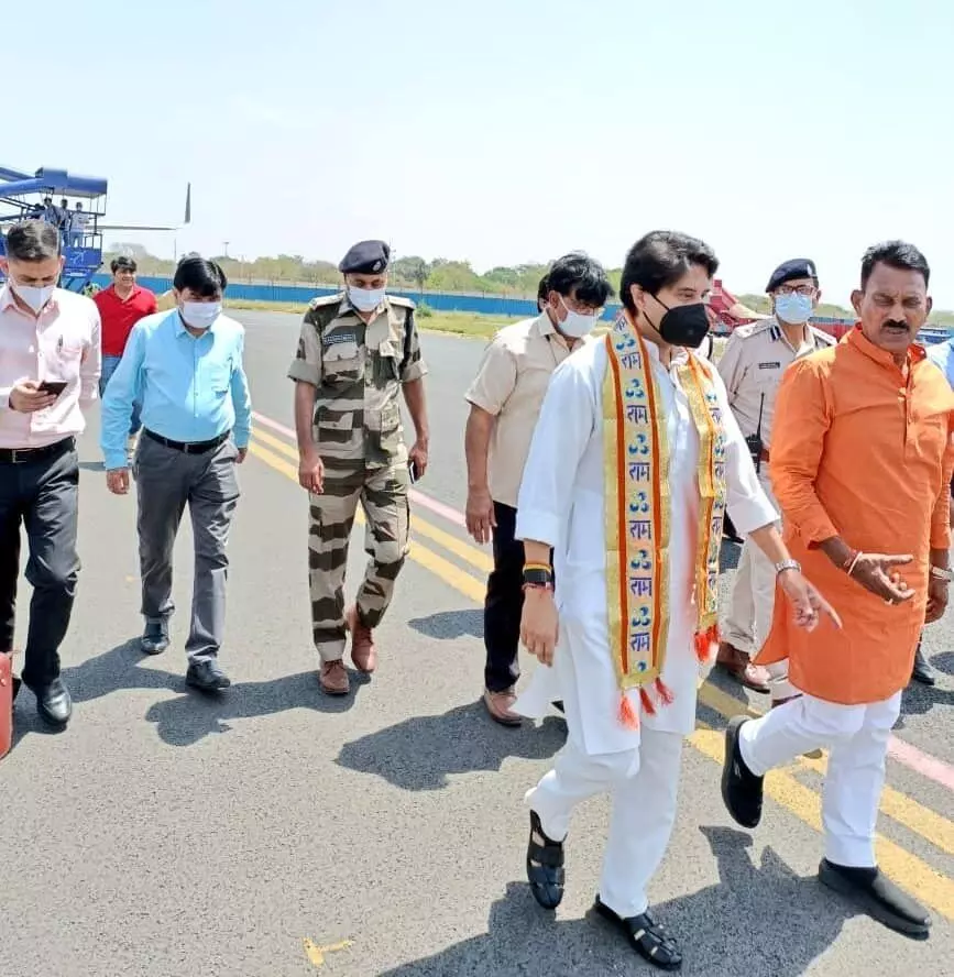 ग्वालियर। केंद्रीय मंत्री ज्योतिरादित्य सिंधिया दो दिन के दौरे पर आज ग्वालियर पहुंचे। राजमाता विजयराजे सिंधिया विमानतल महाराजपुरा पर परभाई मंत्री तुलसी सिलावट और भाजपा कार्यकर्ताओं ने उनका स्वागत किया। वह विमानतल से भिंड के लिए रवाना हो गए। इस दौरान उनके गले में राम नामी साफा नजर आया। जोकि चर्चा का विषय बना रहा।