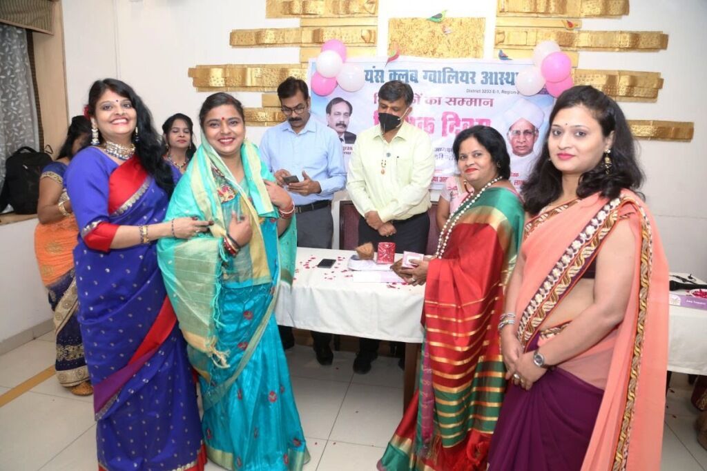 ग्वालियर। शिक्षकों लायंस क्लब ग्वालियर आस्था द्वारा शिक्षक दिवस पर सात शिक्षिकाओं का सम्मान किया गया जिसमें मीना जैन, बबिता गुप्ता, वंदना शर्मा, संगीता गोयल एवं वंदना जैन आदि शामिल रहे। साथ ही एक जरूरतमंद बच्ची को सिलाई मशीन दी गई। इस मौके पर मुख्य अतिथि के रूप में नितिन मांगलिक, सुधीर, प्रदीप, रमेश, संस्थापक मीनीक्षी गोयल, अध्यक्ष संगीता जौहरी, मोहिता गोयल एवं अलका अग्रवाल आदि उपस्थित रहे।