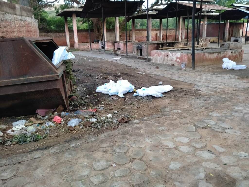 संक्रमितों के अंतिम संस्कार के बाद खुले में फेंके पीपीई किट