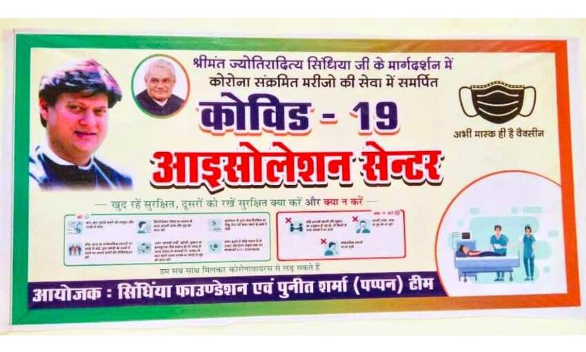 इसी क्रम में सांसद ज्योतिरादित्य सिंधिया के मार्गदर्शन में सिंधिया फाउंडेशन और समाजसेवी पुनीत शर्मा की टीम कोरोना संक्रमित मरीजों के इलाज के लिए 200 बेड का आइसोलेशन अस्पताल तैयार कर रहीं है। ग्वालियर मेला ग्राउंड स्थित फेस्टिलेशन सेंटर में तैयार हो रहे इस अस्पताल का 20 अप्रैल से शुभारंभ हो जाएगा। समाजसेवी पुनीत शर्मा की टीम और पूर्व विधायक मुन्नालाल गोयल, मंडल अध्यक्ष उमेश भदोरिया, आनंद गुप्ता, गिर्राज पटसारिया आदि ने अस्पताल का निरीक्षण किया।