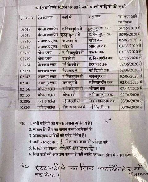 ये ट्रेने निकलेंगी ग्वालियर से -