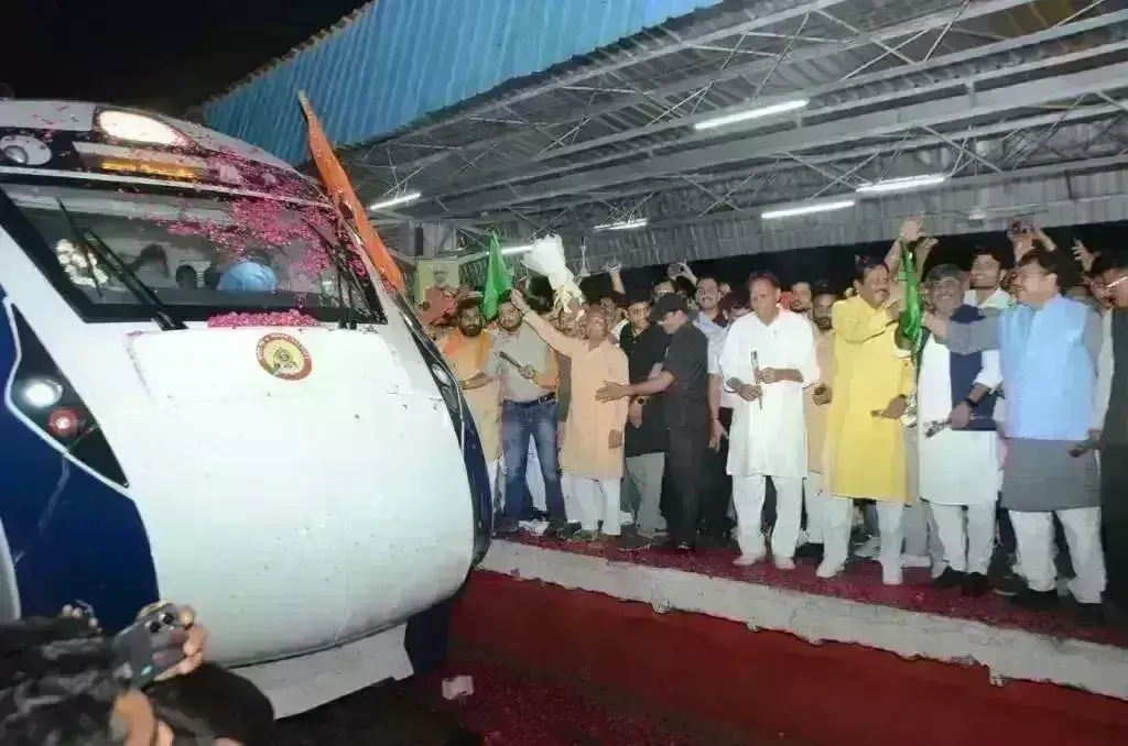 वंदेभारत एक्सप्रेस को हरी झंडी दिखाकर रवाना करते सांसद विवेक शेजवलकर