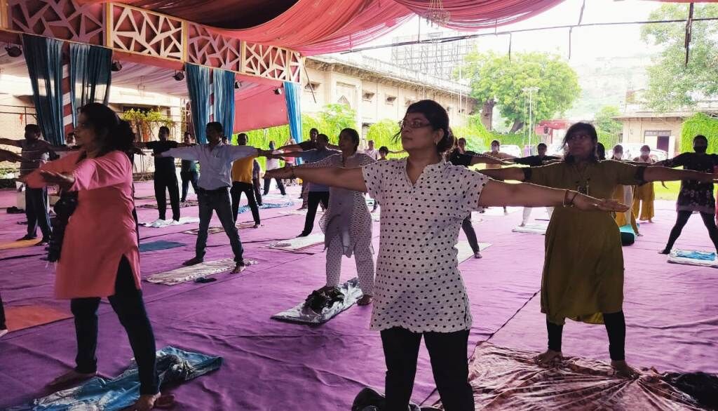 ग्वालियर, न.सं.। कोरोना से बचने के लिए अपनी दिनचर्या में योगा जरूरी है। योग हमें कई बीमारियों से छुटकारा दिलाता है। इसी क्रम में रोटरी क्लब संट्रल द्वारा रविवार को मोती पैलेस में कपल योगा प्रशिक्षण का आयोजन किया गया। योग शिक्षक अखिलेश पचौरी ने योगा कराया। इस मौके पर नरेन्द्र रोहिरा, सुबोध सिरोलिया, हरीश श्रीवास्तव एवं राजेश गर्ग आदि उपस्थित थे।