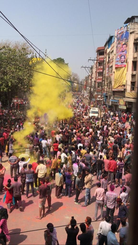इंदौर में रंगपंचमी पर निकली गेर, मिसाइल से बरसा रंग-गुलाल , राजवाड़ा बना इंद्रधनुष