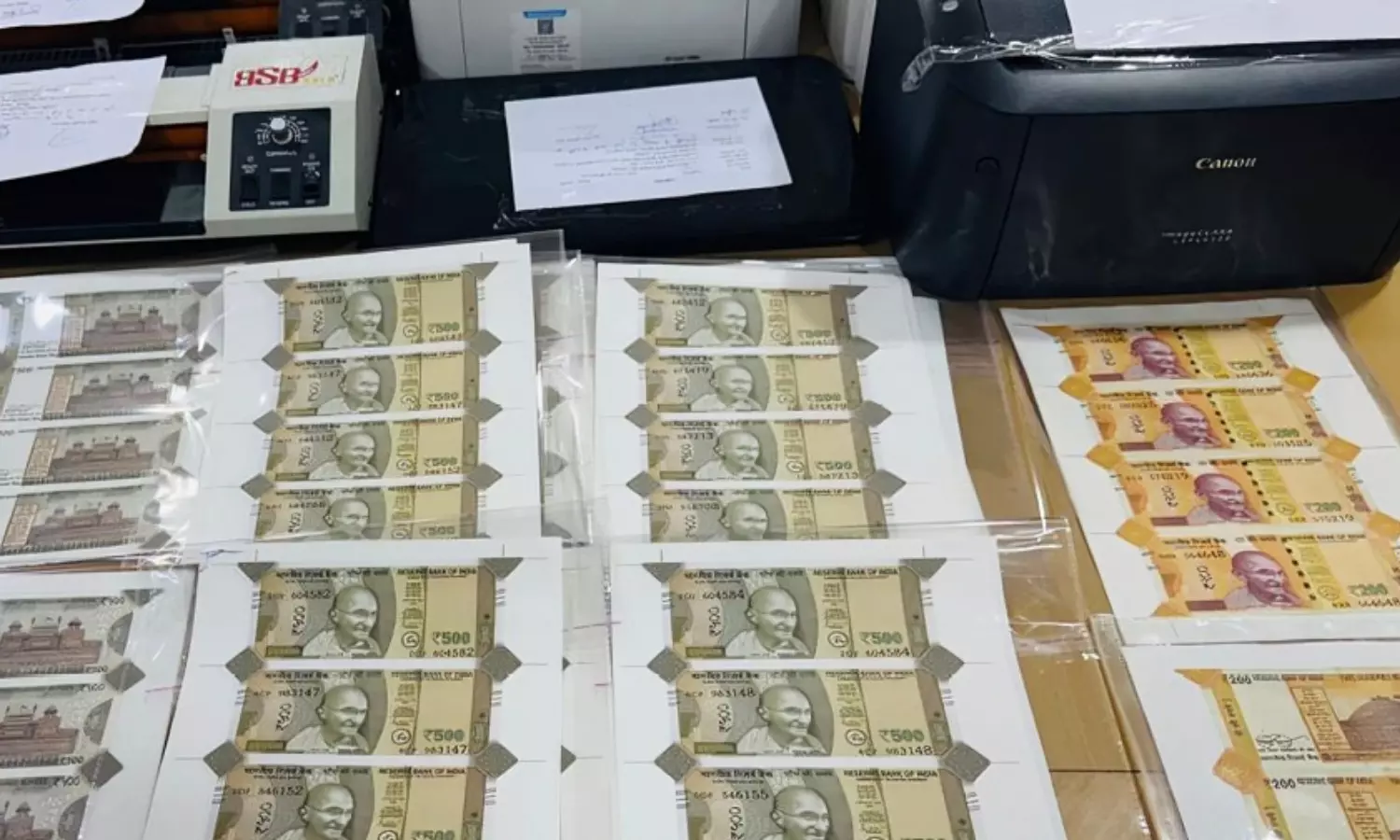 गिरफ्तार आरोपियों के पास से तीन लेजर प्रिंटर, 85 GSM के A4 साइज के कागज (जिन पर 500 और 200 रुपये के नकली नोट छपे थे), दो लैमिनेशन मशीनें, आरबीआई की सुरक्षा पट्टी लगाने वाली विशेष पन्नी और एक लैपटॉप बरामद किया गया है।